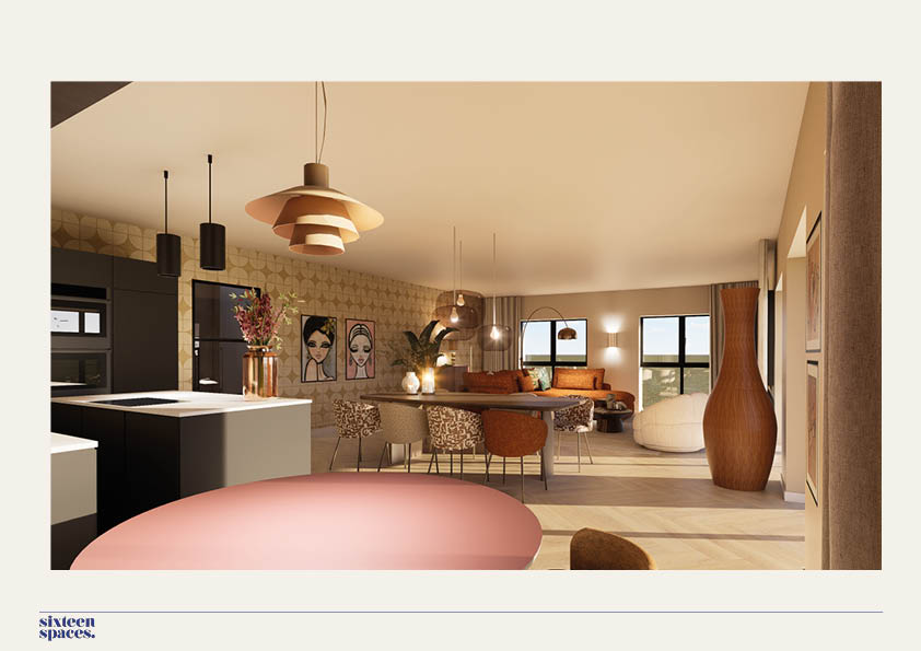 Voor deze nieuwbouwwoning in Zaandam, met uitzicht op de Zaan, ontwierpen we een interieur waarin de rust van Japandi wordt gecombineerd met speelse retro-invloeden. Het resultaat is een warm en karaktervol geheel.